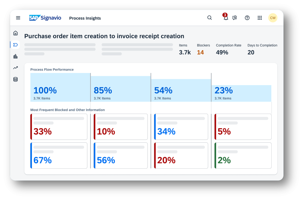 SAP Signavio Process Insights is a cloud-based process analytics tool that delivers fast, actionable insights into your business operations by leveraging data from SAP ERP, SAP S/4HANA, SAP CRM, SAP EWM, SAP TM, SAP SRM and SAP Ariba. It’s designed for business executives, process owners, and transformation leaders who need rapid visibility into their process performance and improvement potential.