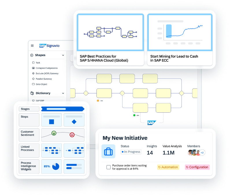SAP Signavio Process Intelligence, kuruluşların süreçlerine ilişkin net, veriye dayalı bir perspektif sağlayarak operasyonel ve deneyimsel mükemmelliğe ulaşmalarına yardımcı olmak için tasarlanmış güçlü, bulut tabanlı bir süreç madenciliği çözümüdür. SAP Signavio Süreç Dönüşüm Paketi’nin bir parçası olarak, şirketlerin SAP veya SAP dışı sistemlerde çalışsınlar, tüm uçtan uca iş süreçlerini anlamalarını, iyileştirmelerini ve dönüştürmelerini sağlar.