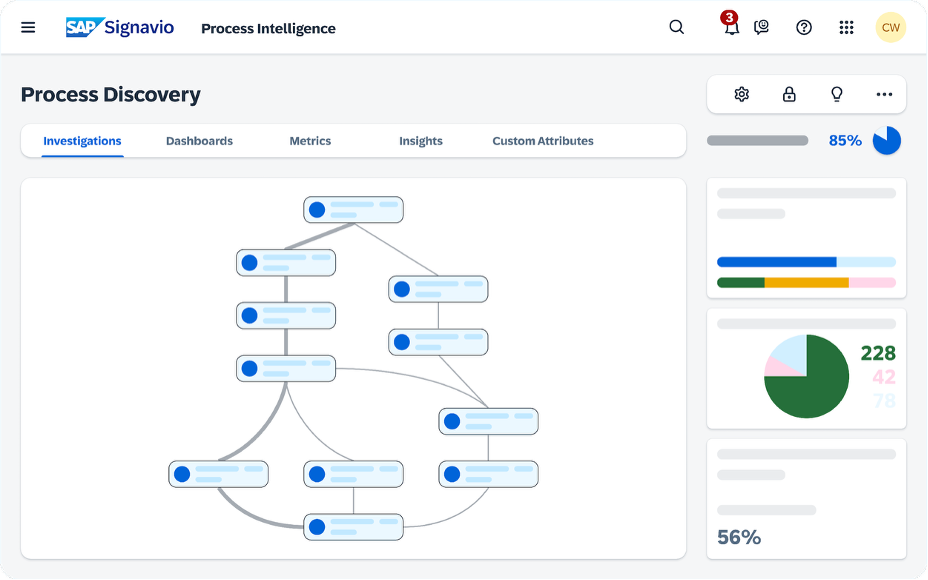 SAP Signavio Process Intelligence, derinlemesine süreç anlayışı ve eyleme geçirilebilir değişiklik için sağlam işlevsellikler sunar.